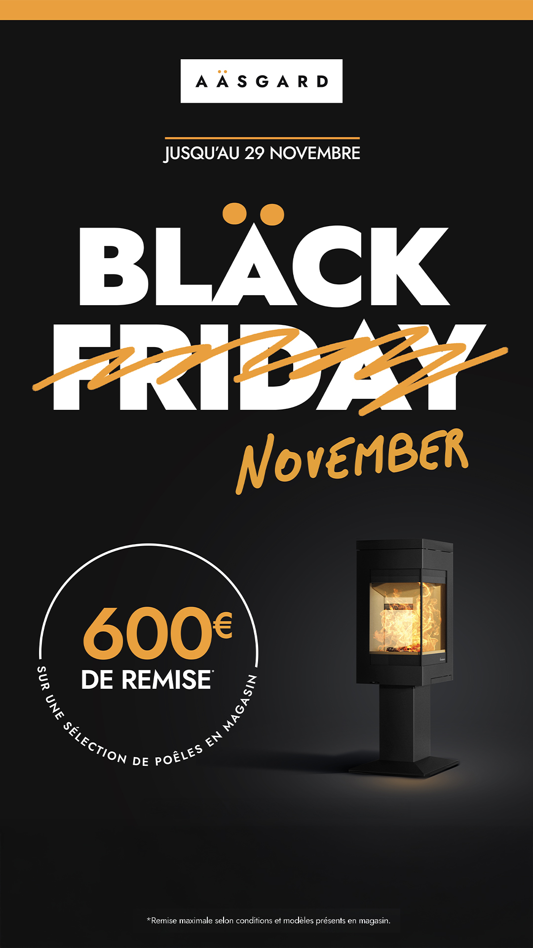 Jusqu'au 29 novembre, -600€ sur une sélection de poêles en offre limitée dans votre magasin Aäsgard* !