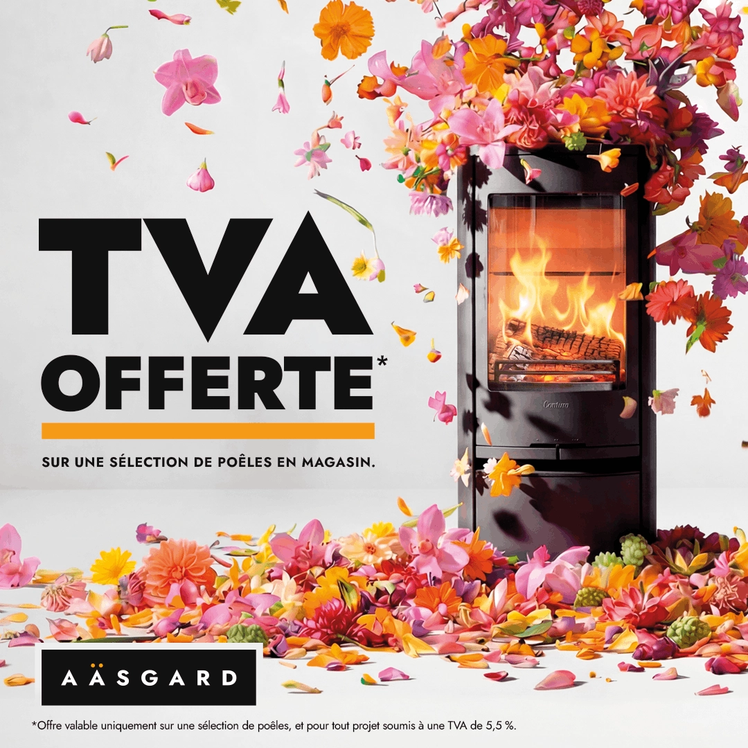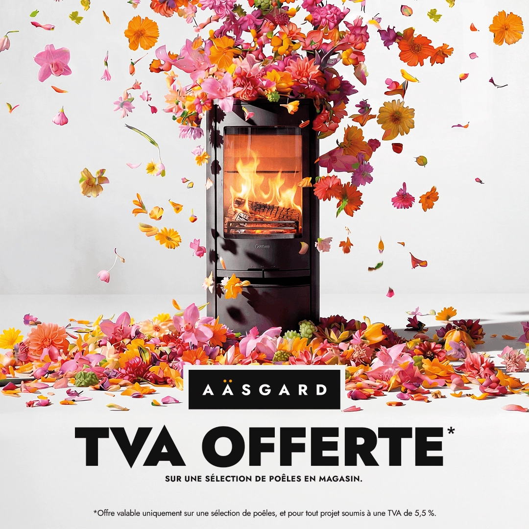 Du 4 au 21 février, Aäsgard vous offre la TVA à 5,5 % sur une sélection de poêles en magasin, pour les projets éligibles*.