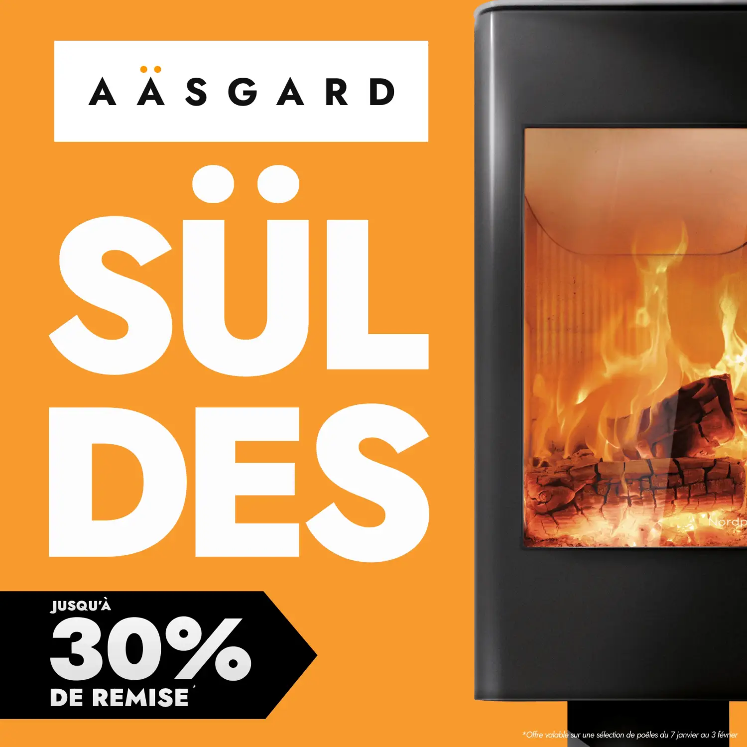 Jusqu'au 3 février, bénéficiez d'une remise allant jusqu'à -30% sur une sélection de poêles en offre limitée dans votre magasin Aäsgard* !